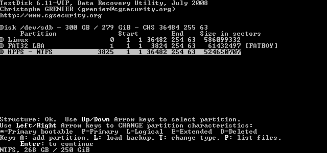 Mittels TestDisk 6.10 habe ich dann eine Analyse gefahren (siehe Attachments).