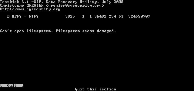 aber bei der NTFS Partition gab es die Message "Can't open filesystem. Filesystem seems damaged."
