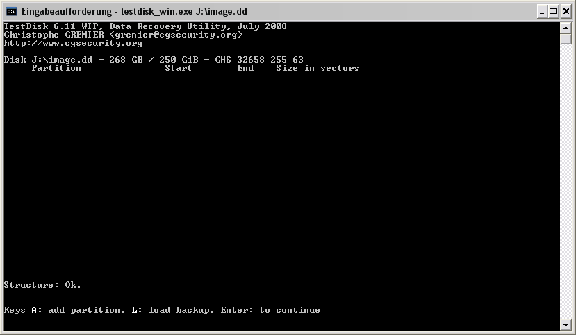 zu sein im ersten Schritt (Analyse -> current partition structure; siehe auch Backup File bei den