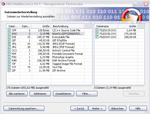 Beim Überfliegen des TestDisk.logs hab ich gesehen, dass da wesentlich mehr rausgeschrieben wird