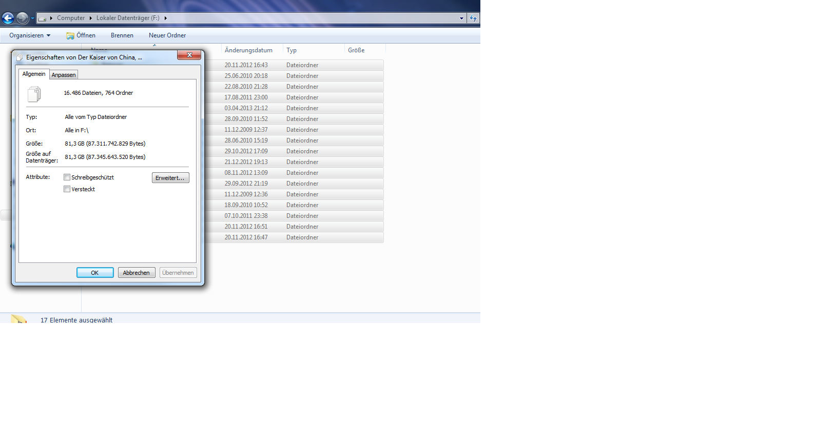 Öffne ich die Festplatte aber nun über den Explorer werden mir nur Ordner und Dateien angezeigt die insgesammt 80 Gb groß sind. Es fehler also 60 GB Dateien. Nun kann ich aber auf der Festplatte über die Suche einen Ordner finden der im Explorer nicht angezeigt wird. Suche ich nach Ordner X finde ich ihn. Mit Inhalt und kann alle Dateien abspielen (Ist ein Hörbuch) Im Suchergebnis steht auch der Ort des Ordners. Und da wird mir genau der Laufwerksbuchstabe der USB Festplatte angegeben. (Kein Unterordner auf der USB Festplatte) Nur kann man den Ordner dort halt einfach nur mit Hilfe der Suche sehen?!?!