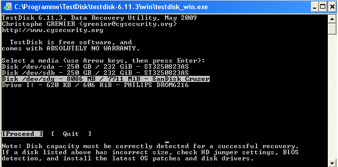 Ich kann auf die Dateien auf meinem USB Stick (SanDisk Cruzer 8GB, ungefähr 7GB Daten drauf) nicht mehr zugreifen: der Flash drive wird zwar als Wechseldatenträger erkannt, wird aber als unformatiert (RAW) angezeigt.
