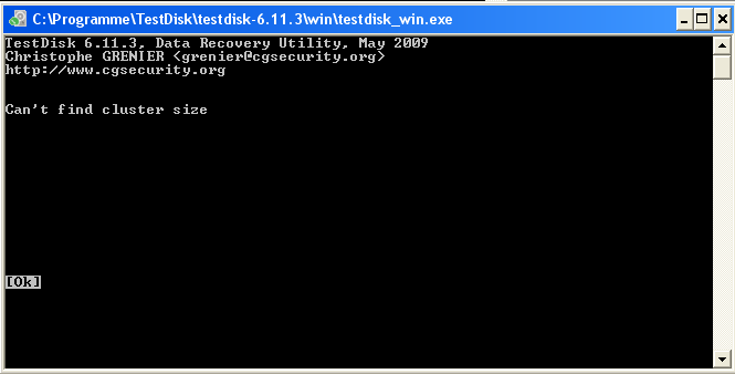 - "rebuild BS" bringt nichts, nach dem Scannen (einige Minuten) kommt nur "can't find cluster size"