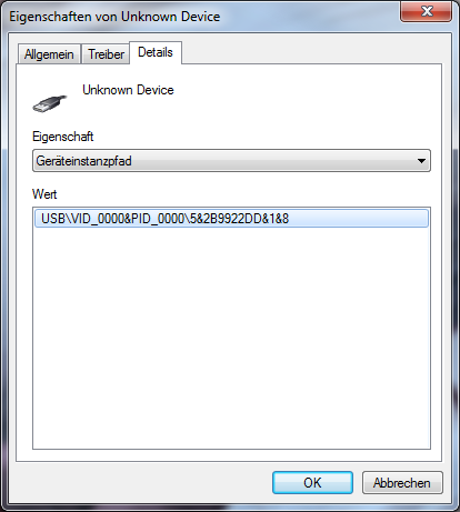 PS: das Unknown Device ist laut Eigenschaften an diesem Ort angeschlossen: Pfad 0 (Port_#0008.Hub_#0001)