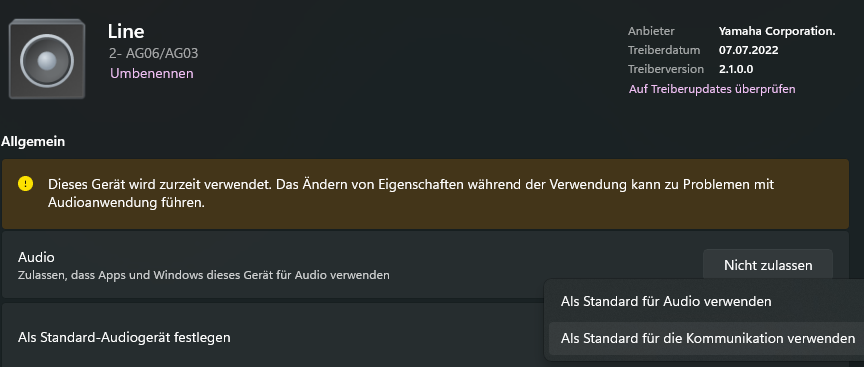 Ebenso ist es als Standardausgabegerät aktiviert, sobald ich es anschließe.