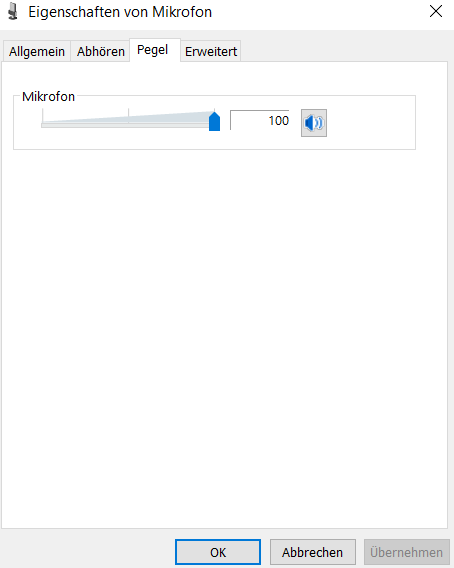 In den Einstellung zu Sound unter Systemsteuerung ist das Gerät aktiviert, als Standard festgelegt und war zu Beginn des Problems tatsächlich im Reiter "Pegel" gemuted. Allerdings habe ich es dort natürlich entmuted, was .... keinen Unterschied gemacht hat. Auch dort wird mir kein Geräuschpegel angezeigt, wenn ich das Mikrofon teste.