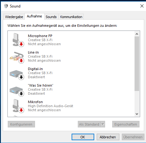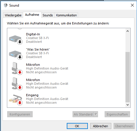 Mein Mikrofon vom Headset ist an der Soundkarte garnicht eingesteckt. Ich hab auch schon testweise die aktiven Aufnahmegeräte von Creative aus der Liste deaktiviert.