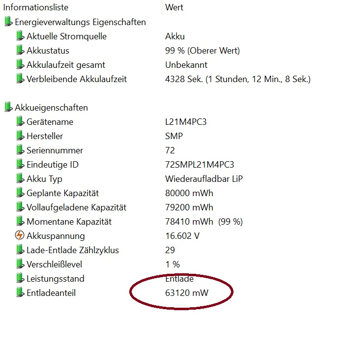 Übrigens, ich habe gerade mal gecheckt, wie schnell der PC im reinen Akkubetrieb ist. Im "Beste Leistung" Modus ist er so schnell wie mit dem Netzteil, d.h. dann zieht er wohl 140 W vom Akku (und der Akku wird schnell leer).