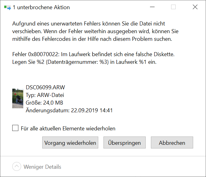 "Die Anforderung konnte wegen eines E/A-Gerätefehlers nicht ausgeführt werden." oder "Im Laufwerk befindet sich eine falsche Diskette."