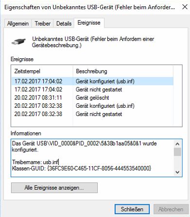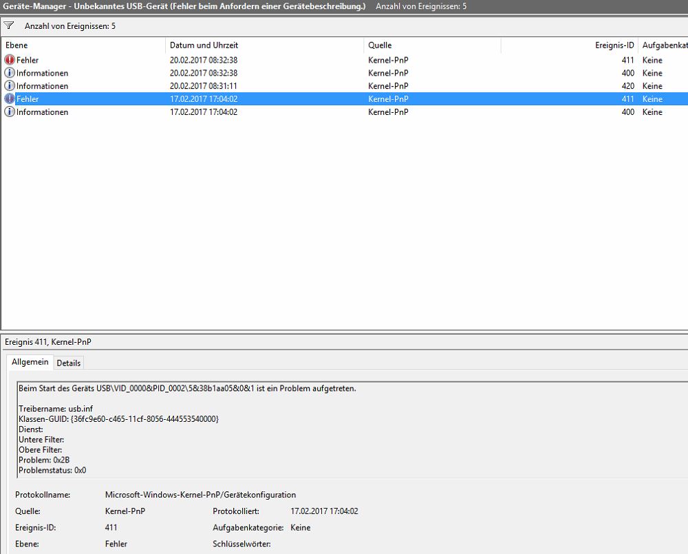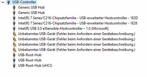 Im Gerätemanager habe ich 4 Ports mit: unbekanntes usb-gerät (fehler beim anfordern einer gerätebeschreibung.)