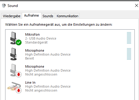 USB-Soundkarte - gibt keinen Ausschlag beim Test: