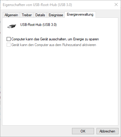Auf Grund dieser Erkenntnisse lehne ich mich mal so weit aus dem Fenster, dass das Windows 10 auf der Kiste die USB-Stromversorgung künstlich "abschneidet" (Strom sparen?). Gibt es eine Möglichkeit, oder noch besser eine Einstellung, dass das nicht mehr gemacht wird? Wie der Linux-Test zeigt, ist das Gerät ja von der Hardware dazu im Stande die benötigten Ströme zu liefern.