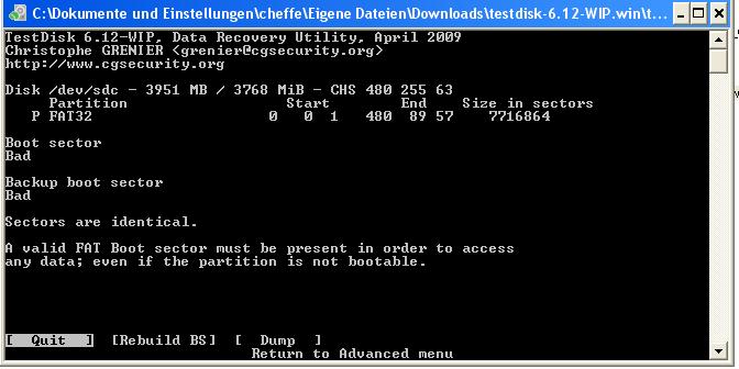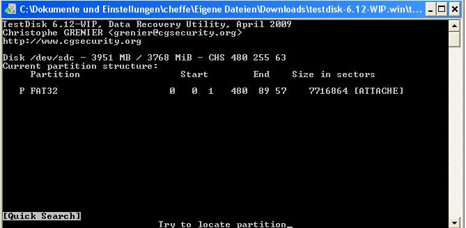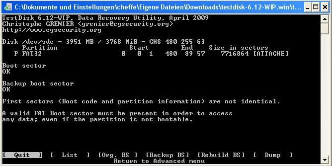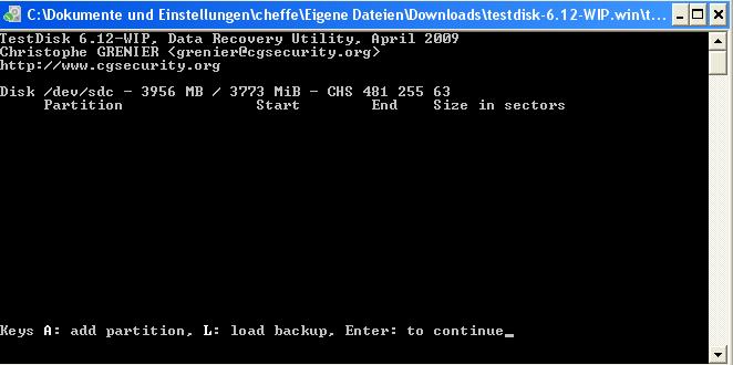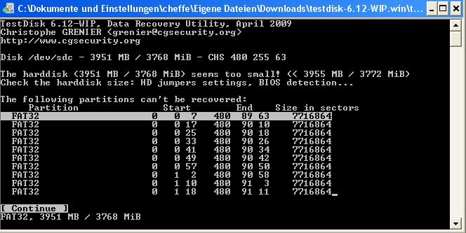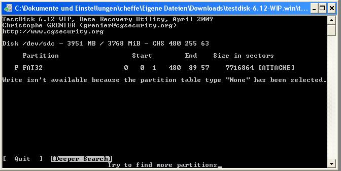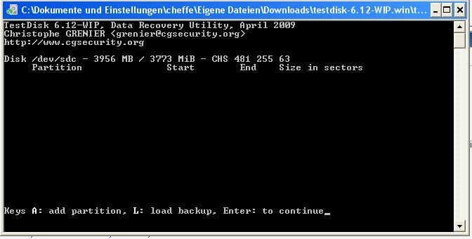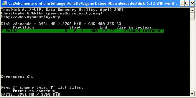 Habe Testdisk (version 6.11.3) drüber laufen lassen mit folgender Meldung
