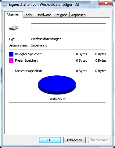 Ein paar Screenshots anbei zur besseren Verständlichkeit. Die beiden gefundenen Laufwerke sind die Festplatte und ein USB UMTS Modem. Die gleichen Ergebnisse habe ich auch auf anderen PCs.