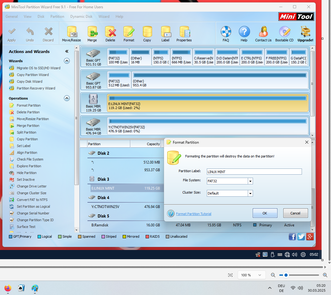 Oder einfach das hier, geht doch auch ganz einfach mit Bordmitteln. Hier wird mal wieder aus einer Mücke ein Elefant gemacht.Langi1 schrieb:Kannst aber eine kleinere Partition erstellen und die mit FAT32 formatieren.