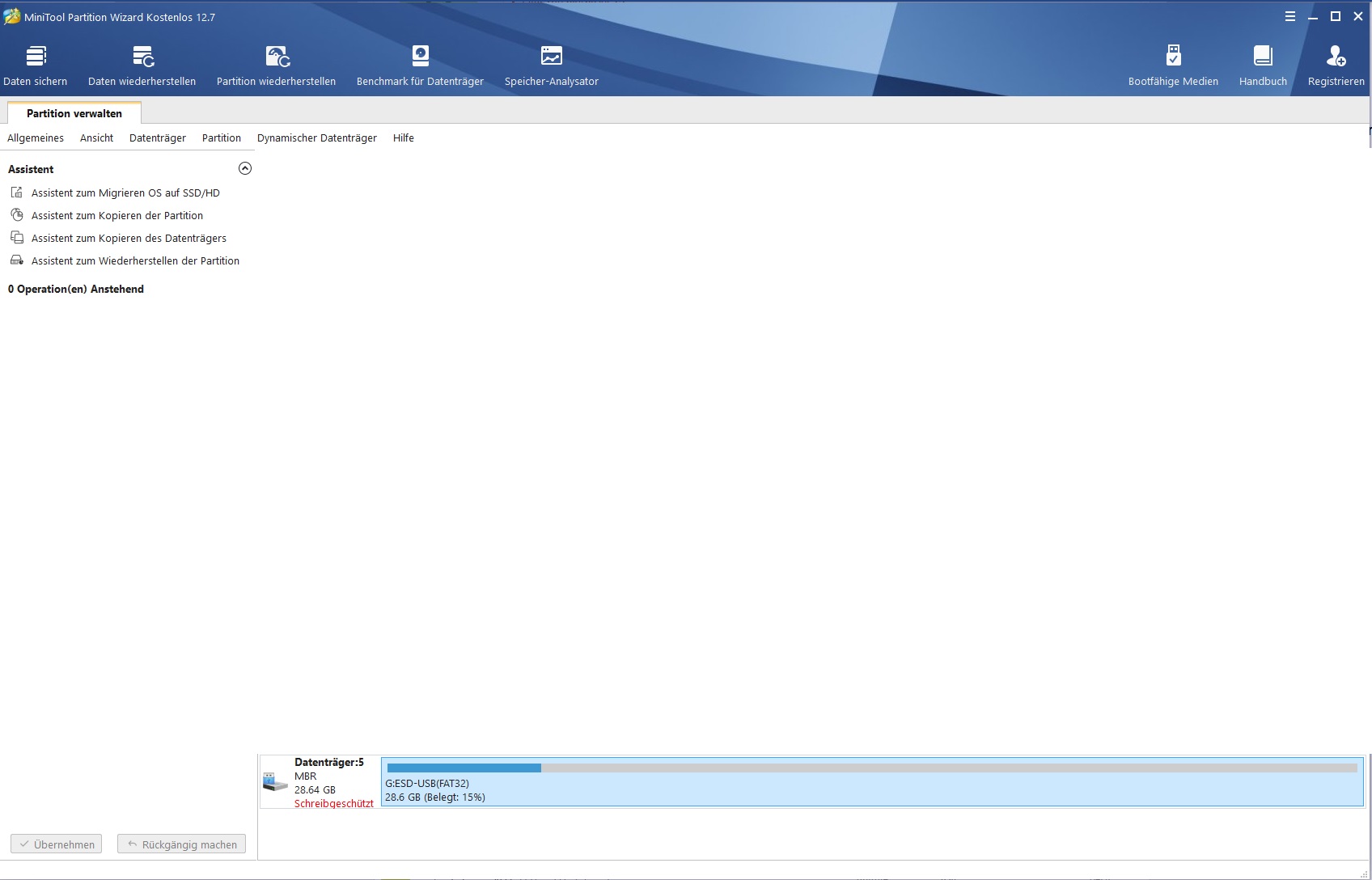 Du klickst auf den usb-Datenträger, also z.Bsp. "Datenträger:4". Dann wird das blau unterlegt und dann erscheint links im Menü "mbr neu erstellen". Bei dir ist die Partition blau hinterlegt, nicht der Datenträger. Wobei, ich sehe gerade, dass der Datenträger schreibgeschützt ist ... könnte dann nicht funktionieren.