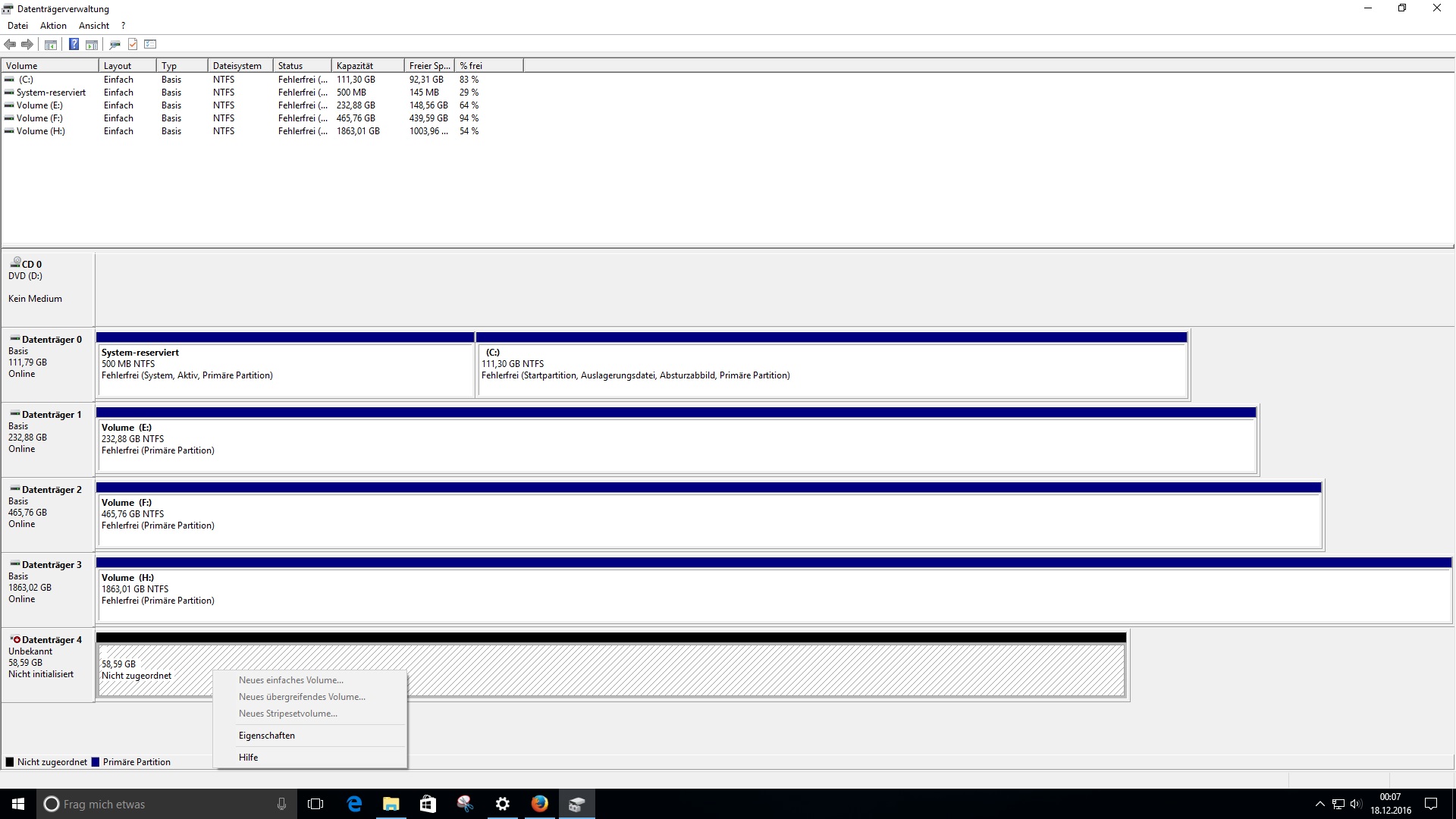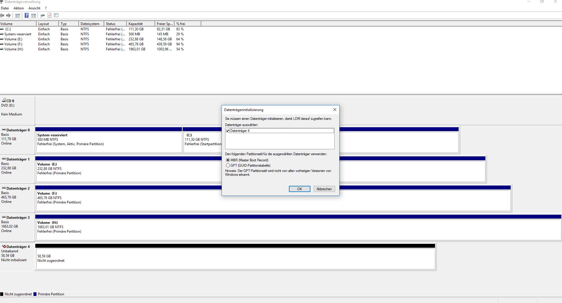 Er wird zwar soweit erkannt und steht im Gerätemanager, aber muss initalisiert werden....und das klappt nicht.