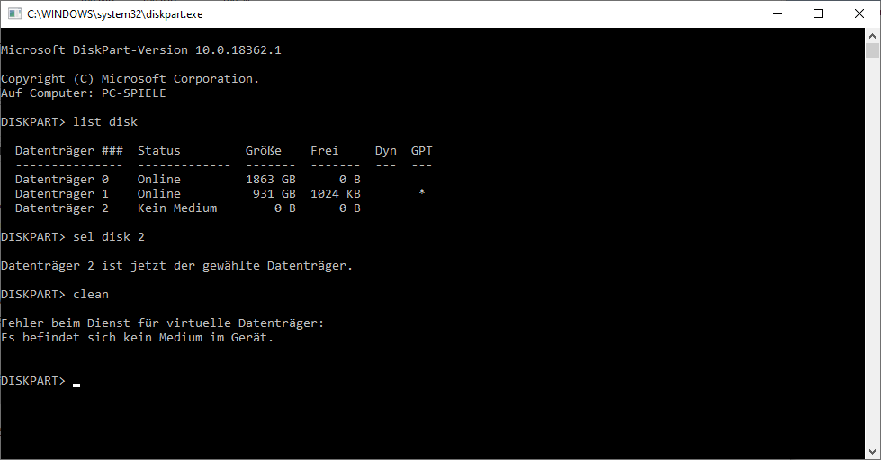 Dieser wird zwar von der Computerverwaltung erkannt, aber mit "kein Medium" angezeigt.