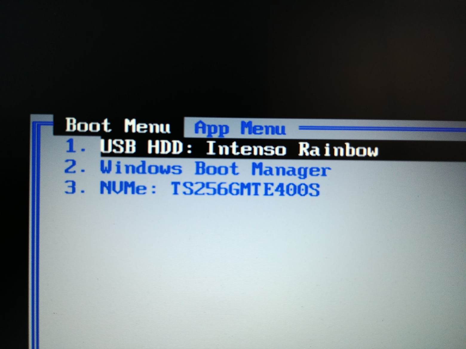 Es wird außer dem Boot Manager sowohl die neue SSD als auch der USB Stick angezeigt (siehe Foto), allerdings wird dieser offenbar nicht als Bootmedium erkannt. Denn wenn ich bei USB HDD ... auf Enter klicke, verschwindet das Bild für einen Bruchteil einer Sekunde und wird dann genau so wie vorher angezeigt. Genau das gleiche passiert übrigens auch, wenn ich Pkt. 2 oder 3 anklicke.