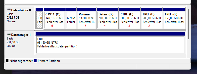 Wie groß siehst du im Bild in #32 (nachgefügt). C hat 149 GB für nur Windows und Programme, die Daten sind auf D und weitere.