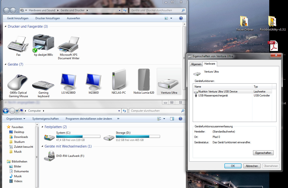 ich habe mir einen Mushkin Ventura Ultra mit 128gb geleistet. Leider wird dieser an meinem Rechner nicht richtig erkannt. D. h. beim Eistecken in ein USB2 oder USB3 slot erkennt Windows zwar, dass ein Gerät eingesteckt wurde, jedoch wird es weder als Wechseldatengerät noch als Festplatte angezeigt. Unter "Geräte und Drucker" wird mir der Stick bei Geräte als "Ventura Ultra" angezeigt.
