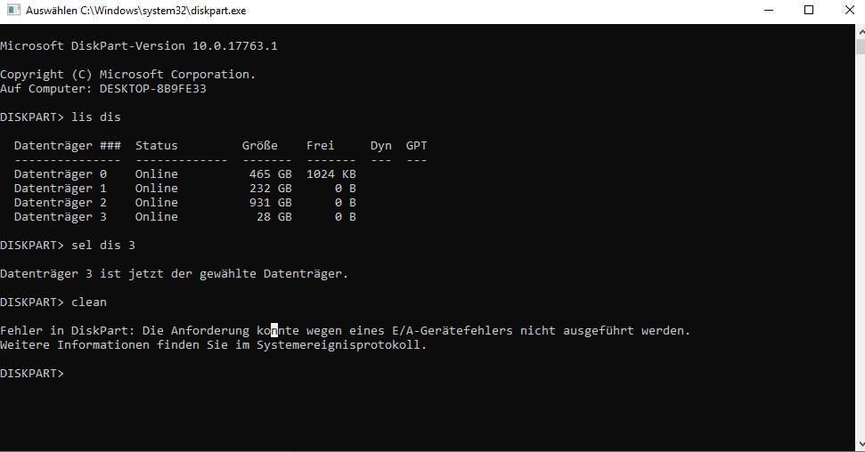 Das mit dem Diskpart hab ich auch schon versucht.. bekomme ich auch nur einen Fehler, siehe Bild.