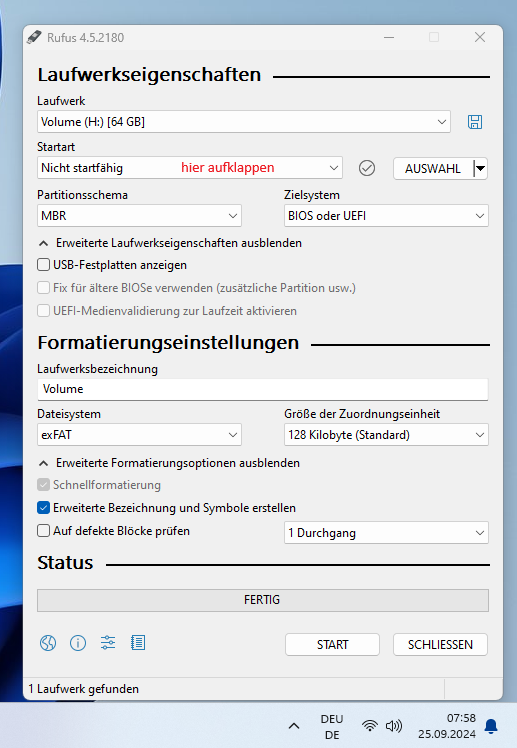 ich habe einen großen udn sehr schnellen USB Stick von Samsung, 256 GB USB 3.1. Der hat bis gestern fehlerfrei funktioniert.