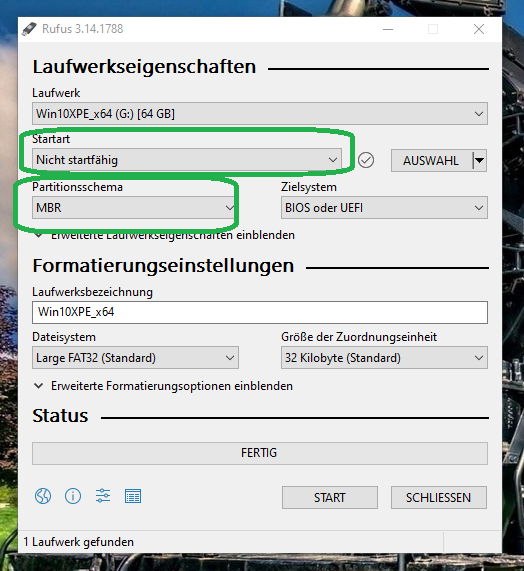 Der Stick wird in der Datenträgerverwaltung erkannt und mit dem Format NTFS erkannt.