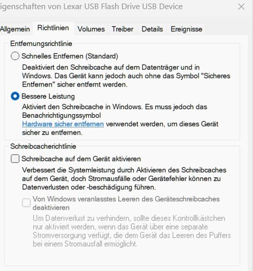 Jetzt fällt mir auf, ich kann Dateien (zb eine 20GB Film-Datei) nur noch mit ca. 3,46 bis 3,8MB/s auf den Stick kopieren. Angeschlossen an beiden USB 3.0 Anschlüssen an meinem Laptop. Beim 2.0 Anschluss wird sogar nur mit 0,5MB/s die Datei auf den Stick kopiert.