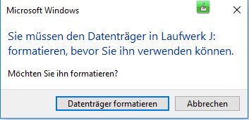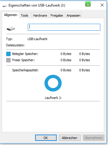 Seit einigen Tagen komme ich nicht mehr an meinen USB Stick ran. Im überblick zeigt er folgendes Bild: