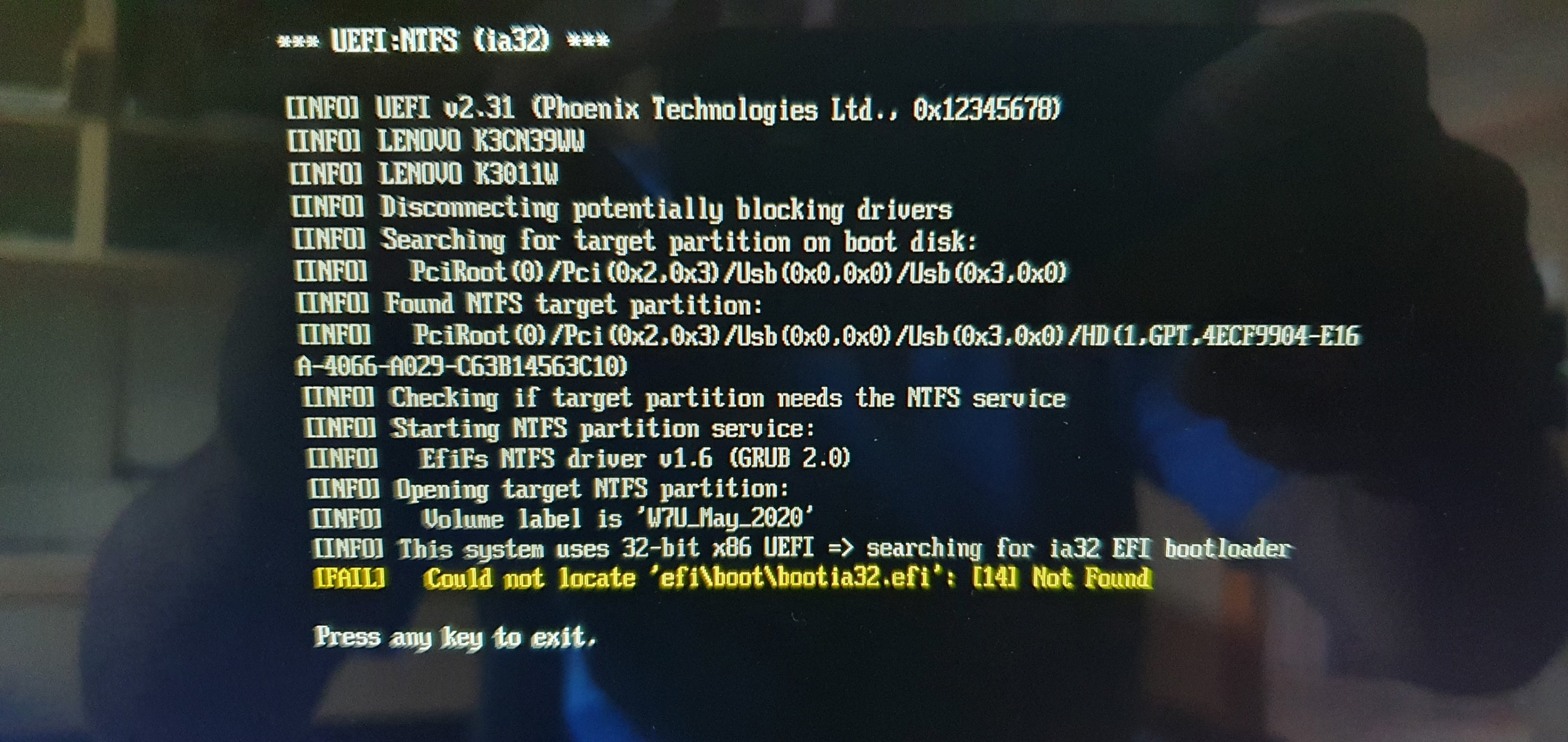 Habe gerade geschaut unter efi boot steht bootia32.efi