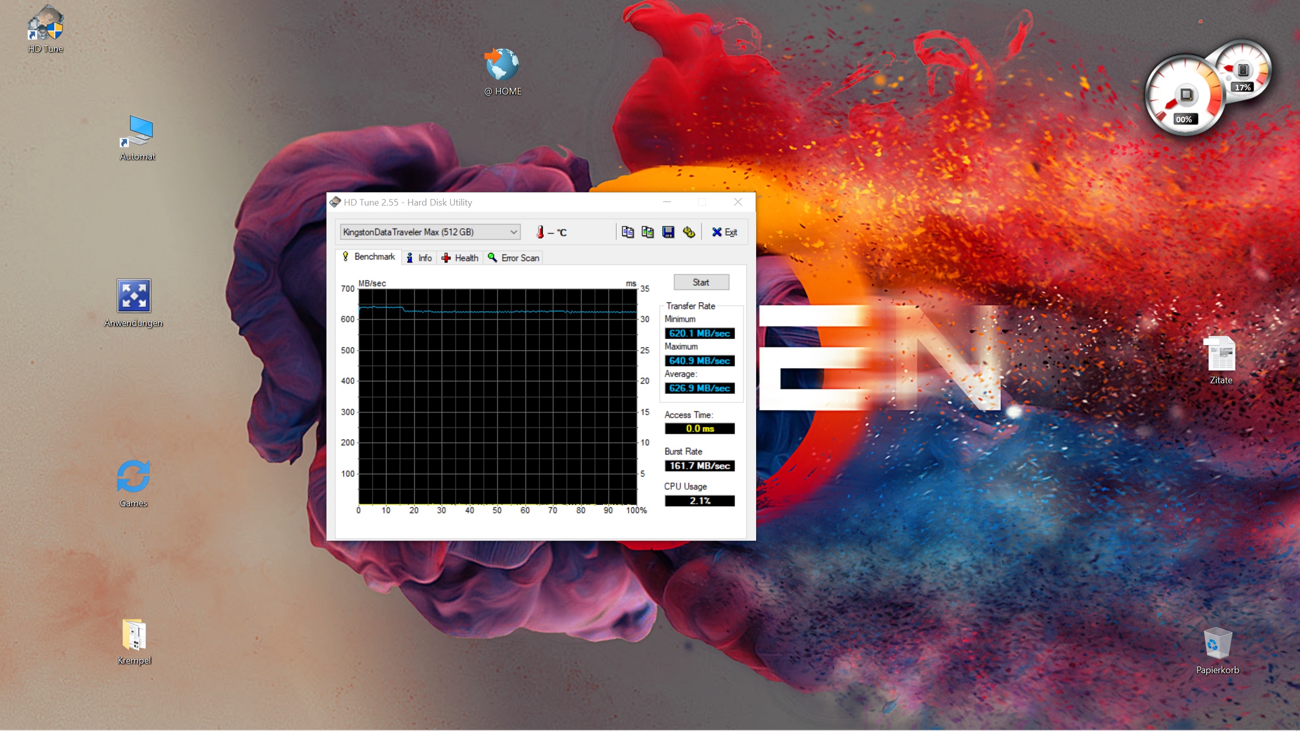 OK, um 15MB/s rum habe ich auch geschafft, aber eben keine 20MB/s, bei Dir ja ebenfalls nicht. Here we go:VelleX schrieb:Das ist halt mein älterer Samsung Stick