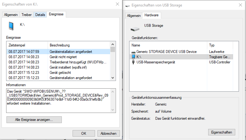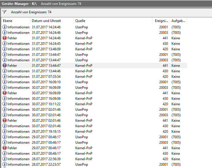 Was mich dabei nur noch mehr verwirrt, ist die Tatsache, dass es gar kein USB-Gerät gibt. Diese Meldung erscheint auch, wenn gar keine USB-Geräte oder ähnliches angeschlossen sind. Es verbindet sich und trennt sich meist im Sekundentakt, begleitet von den nervigen Windowssounds. Dann ist mal minuten- oder gar stundenlang nichts und dann wieder 1 Minute am Stück. Deaktivieren oder Deinstallieren bringt nichts, das Gerät kommt einfach wieder.