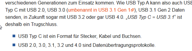 Oder anders gesagt: An welchen Stand der Nomenklatur als aktuell (USB 3.1 GenX oder USB 3.2 GenX) hält sich der Artikel denn? Das wechselt im Artikel immer mal wieder, Je nach Text oder Tabelle mal so mal so.