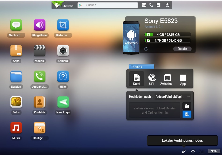 Ergo kann ich weder Dateien von den Phones auf den PC ziehen oder umgekehrt, auch habe ich über den PC keinen Zugriff auf den Smartphonespeicher.
