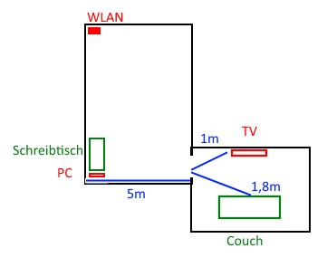 Das Problem ist, dass gefühlt einen halben Meter vor der Couch das Funksignal zu schwach wird und immer wieder abbricht.