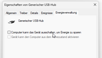 Ansonsten kann man auch im BIOS oder in den Windows Energieeinstellungen das Verhalten der USB Anschlüsse im Akkubetrieb beeinflussen.