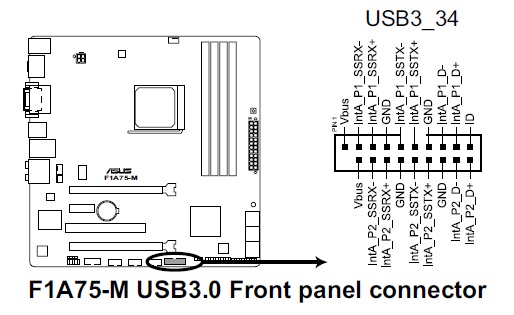 Der Pin sollte, soweit ich mich erinnern kann, der zweite von oben links sein. Also der "IntA_P1_SSRX-"