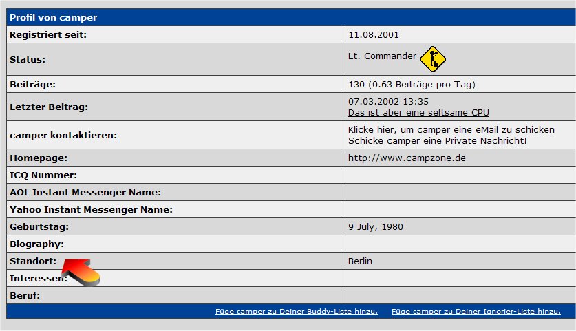 2.) Stimmt, einmal Wohnort (hier Links neben beitrag) und einem Standort @ profil ... ist wirklich etwas dumm