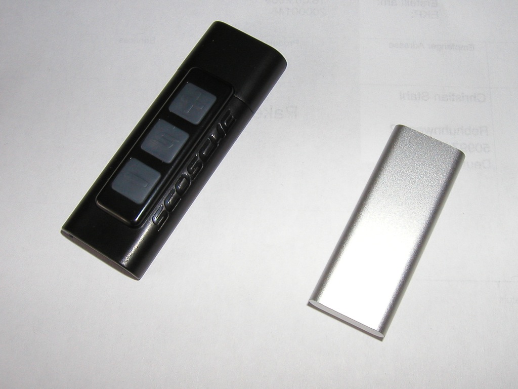 Nachteilig sind die Umstände die Verbindung zwischen shuffle und tapSTICK für Ladung, Abgleich mit iTunes und der Bedienung des Schalters durch herausziehen unterbrechen zu müssen.
