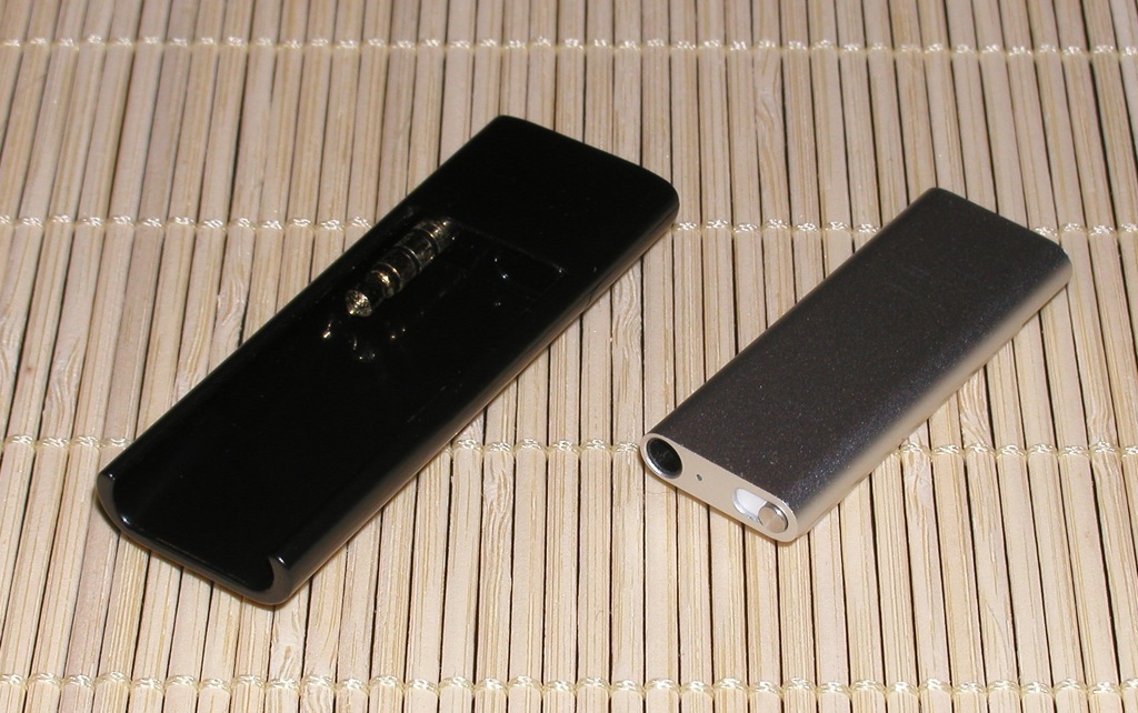 Alles in allem wächst der shuffle nun mitsamt dem tapSTICK auf die Größe eines kleinen Standard MP3 Players, nur ohne Display. 62 x 22 x 10 mm beträgt die Größe.