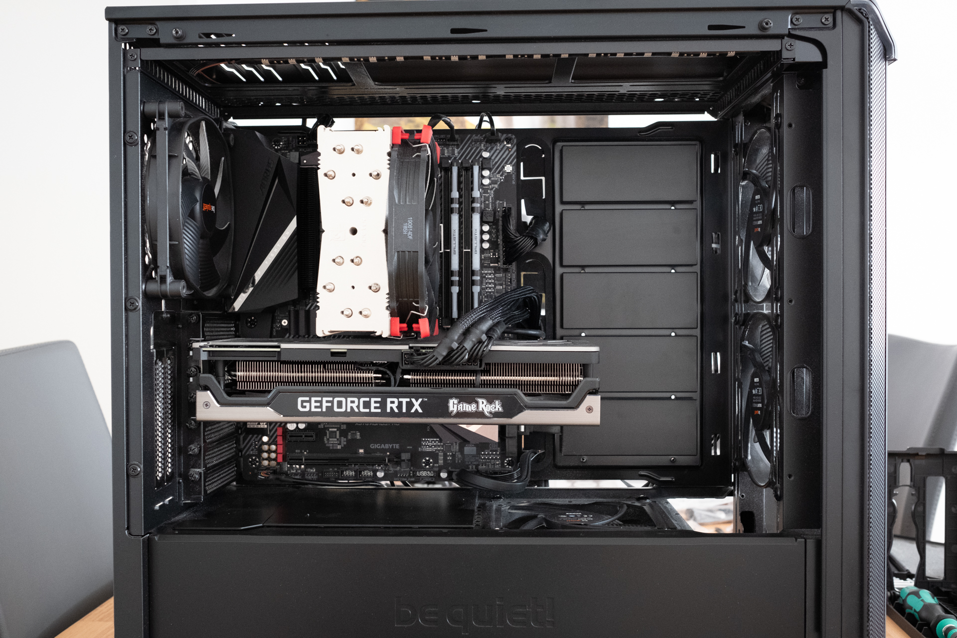 Die Umdrehungen der Lüfter im DarkBase 700 habe ich etwas höher angesetzt da dort weniger Airflow möglich ist. Die Auswirkungen auf die Geräuschentwicklung waren aber vergleichsweise gering da das DarkBase ordentlich gedämmt ist.