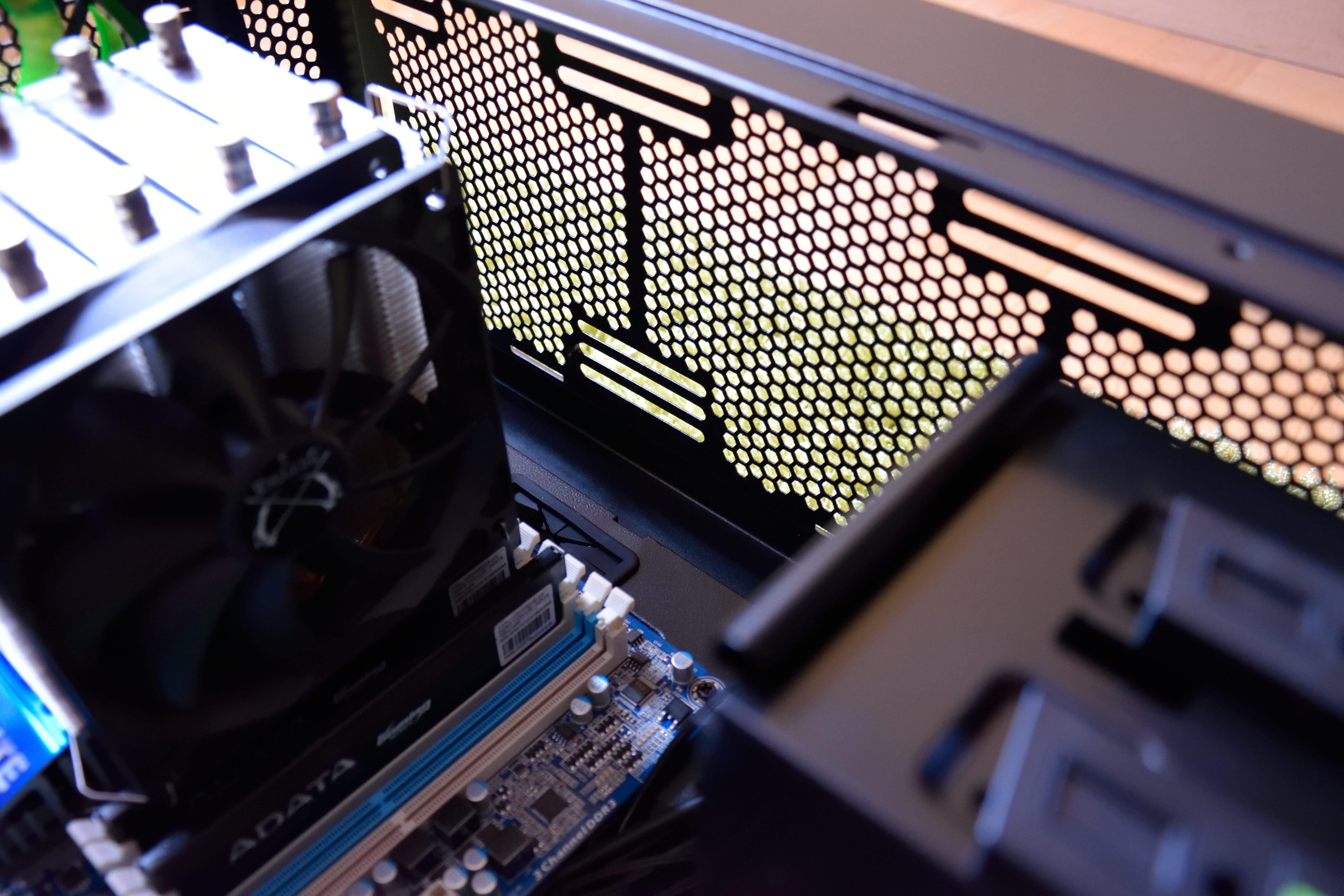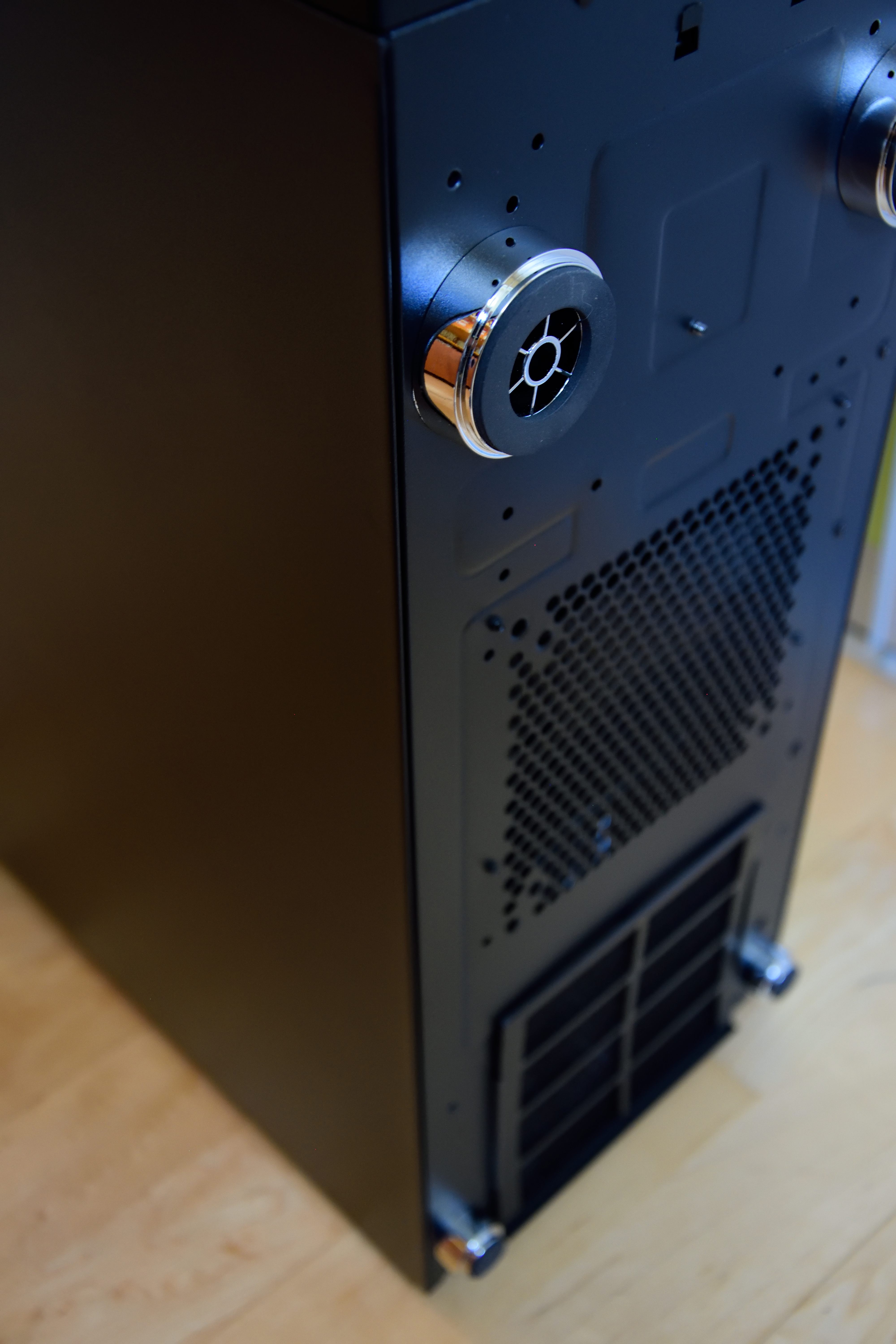 Durch gleich vier Schlauchdurchführungen am Heck ließe sich auch die externe Montage eines AGBs bzw. ein externer Radiator ohne größere Umstände bewerkstelligen. Auch im ODD-Käfig sind oben und unten Schlauchdurchführungen vorhanden.