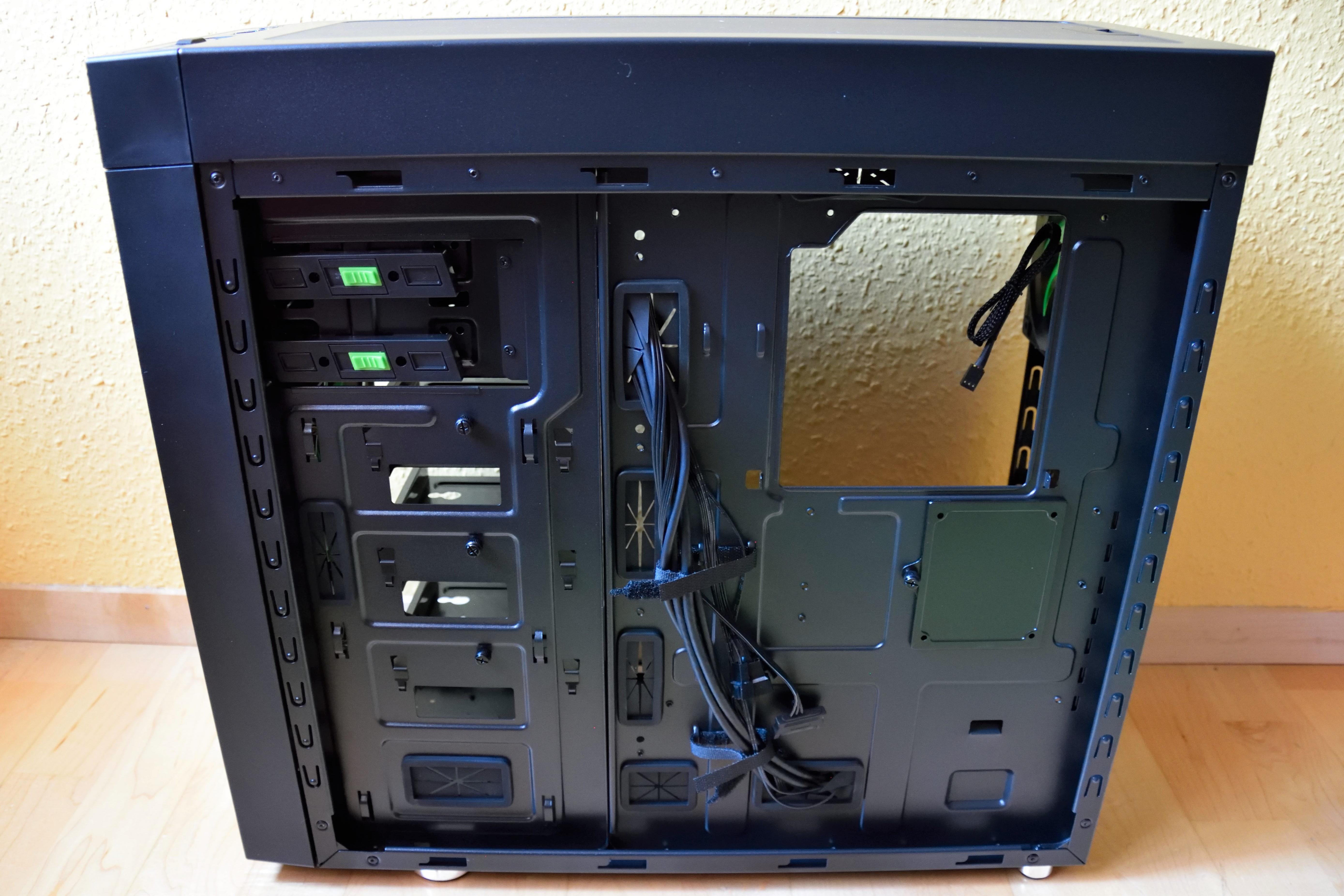 Das größte Manko ist das Platzangebot zwischen Mainboardtray und rückwärtigem Seitenteil. Hier wäre mehr Platz für ein einfacheres Kabelmanagement wünschenswert.