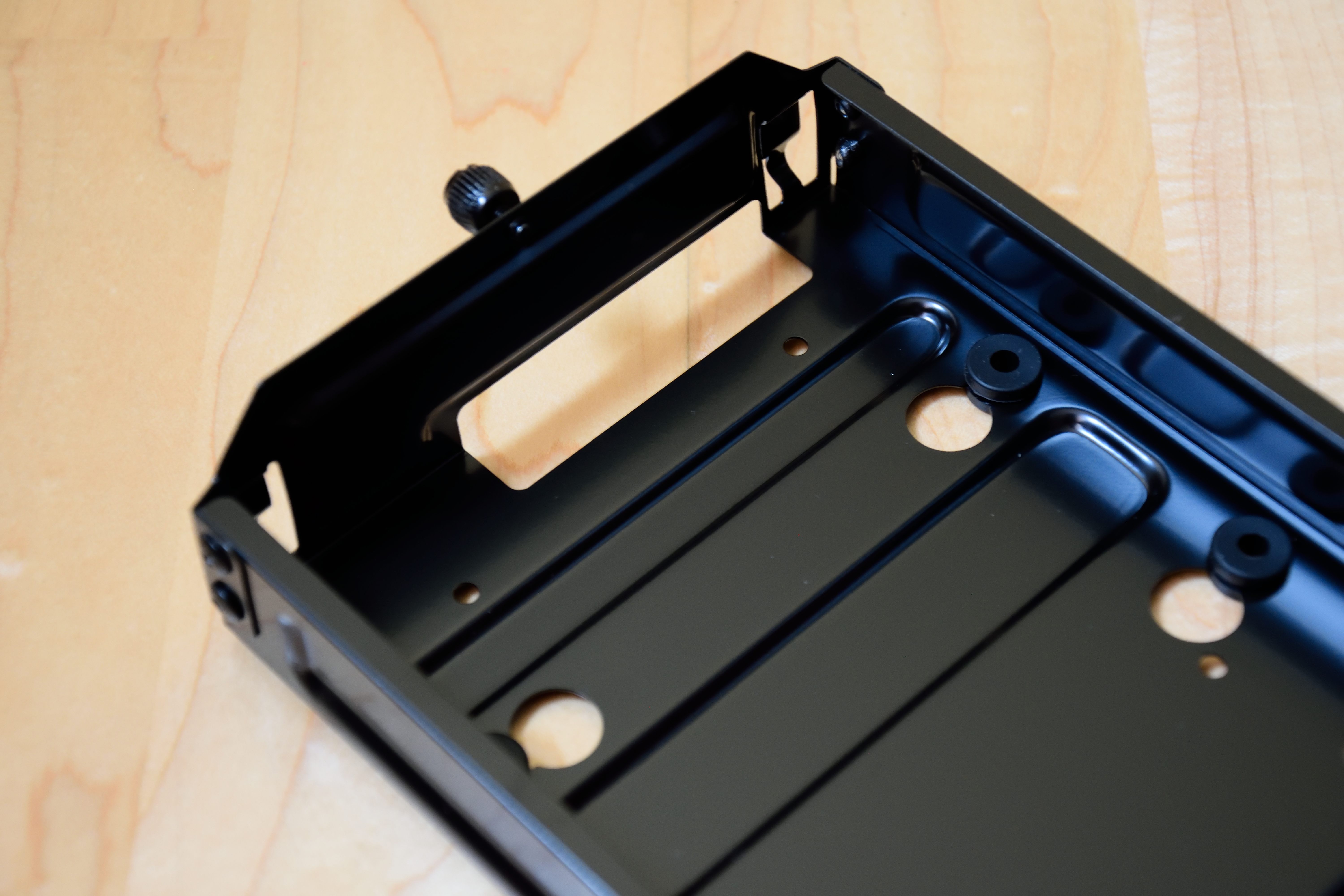 Sehr schnell wird man die Modularität im Innenraum lieben. Die von Nanoxia HDD-Sleds getauften Easy-Mount -Schlitten sind rasch entfernt, wodurch man für den Einbau der Hardware massig Platz bekommt.