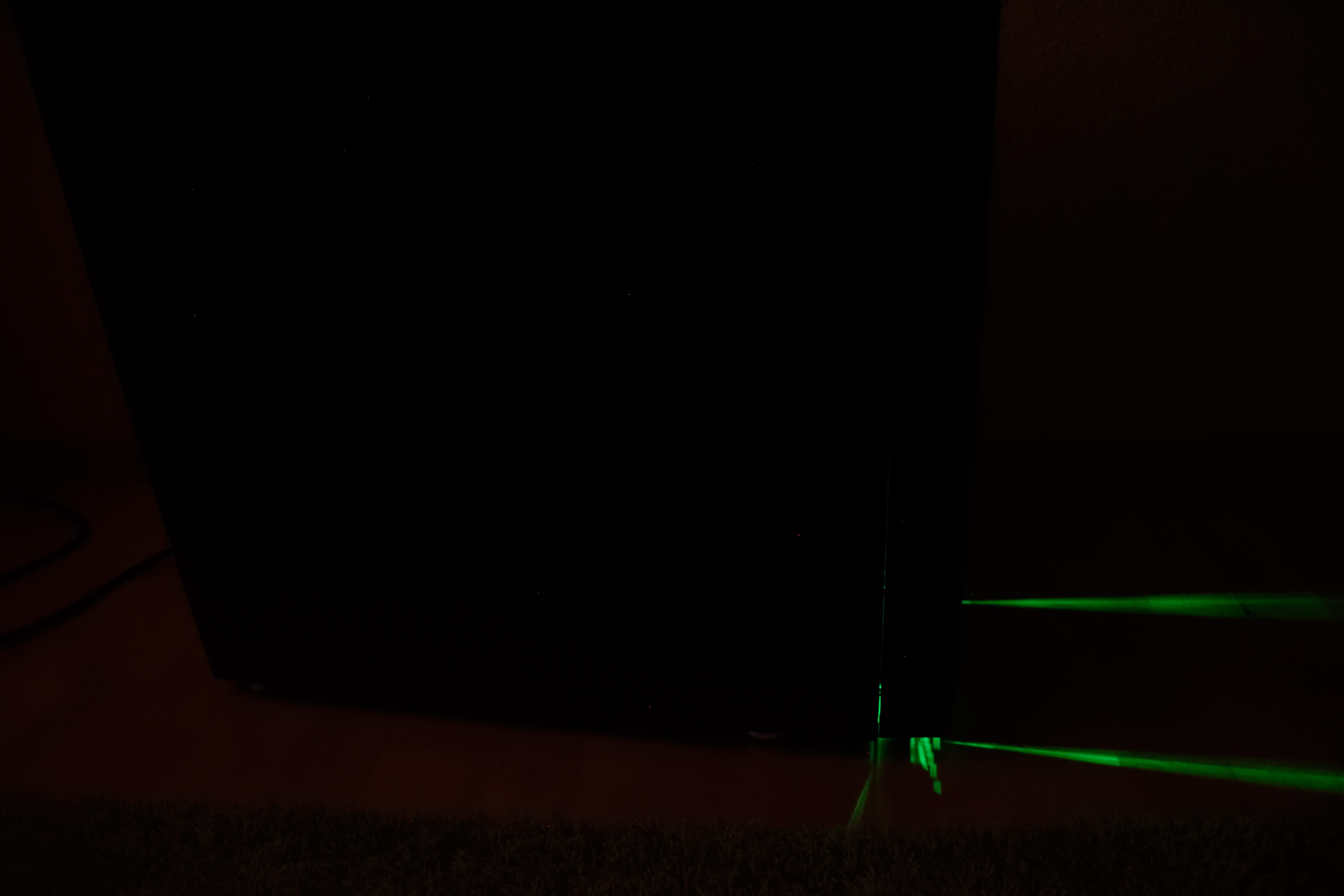 Bei geschlossenem Seitenteil gelangt durch den Spalt zwischen Frontabdeckung und Gehäuse etwas Licht der LED-Beleuchtung.