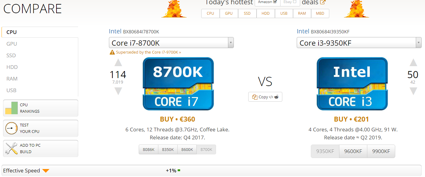 Du würdest einen 9350KF einem 8700K zum Gaming vorziehen? Immerhin ist der 8700k sündhaft teuer und genau gleich schnell bei der Effective Speed, die ja den Gaming Index darstellt (nach eigenen Angaben von UB).