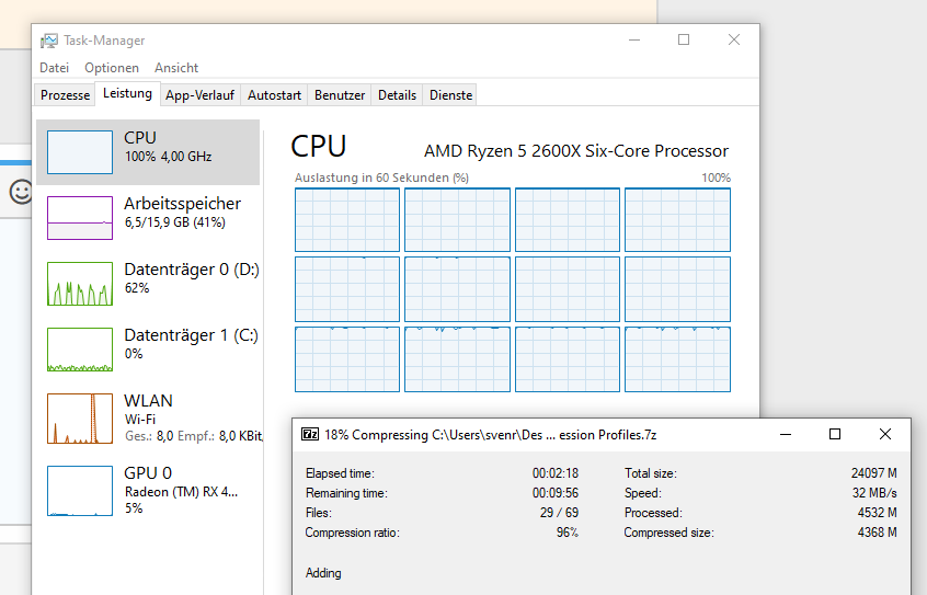 Okay, cool dass 7zip besser multithreaded als zip und rar, aber dennoch kann man die Menschen, die daheim 7-zip, Openshot oder was auch immer installiert haben und von mehr als 4 Kernen wirklich profitieren an einer Hand abzählen. Das ist einfach so.
