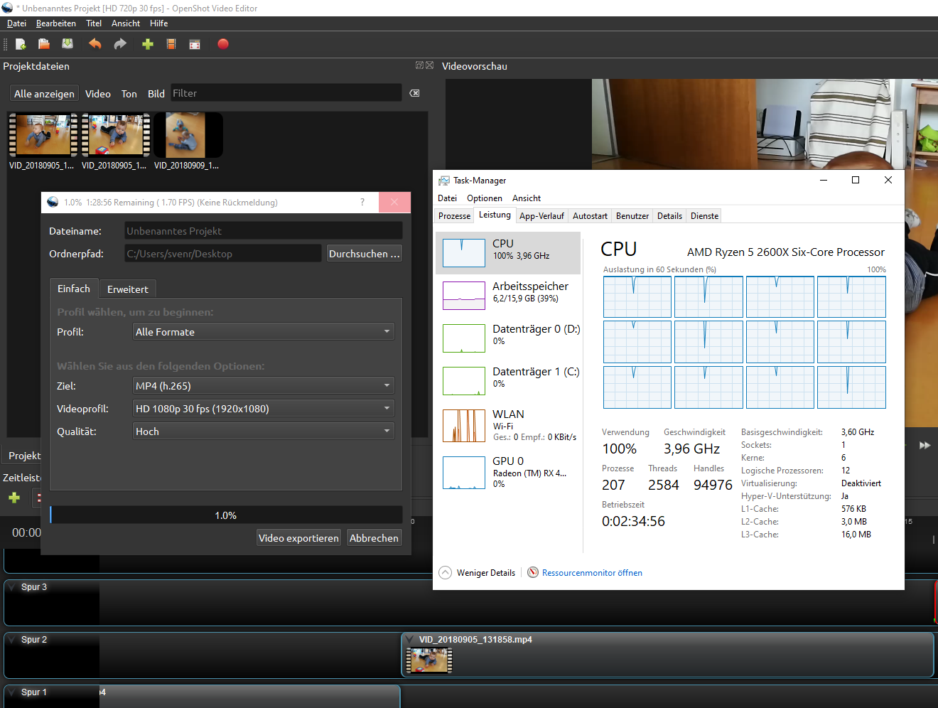 Aber wie gesagt, ist ja gut wenn irgendwas GPU beschleunigt ist. Aber die Dinge die schnell sind, sind ja nie das Problem. Und ganz nebenbei, wenn irgendwas nur 6 meiner 12 Threads auslastet, ist das auch kein Prob, dann kann ich nämlich noch ne runde Spielen oder was anderes machen bis die Kiste fertig ist. Oder eben zwei Jobs starten.