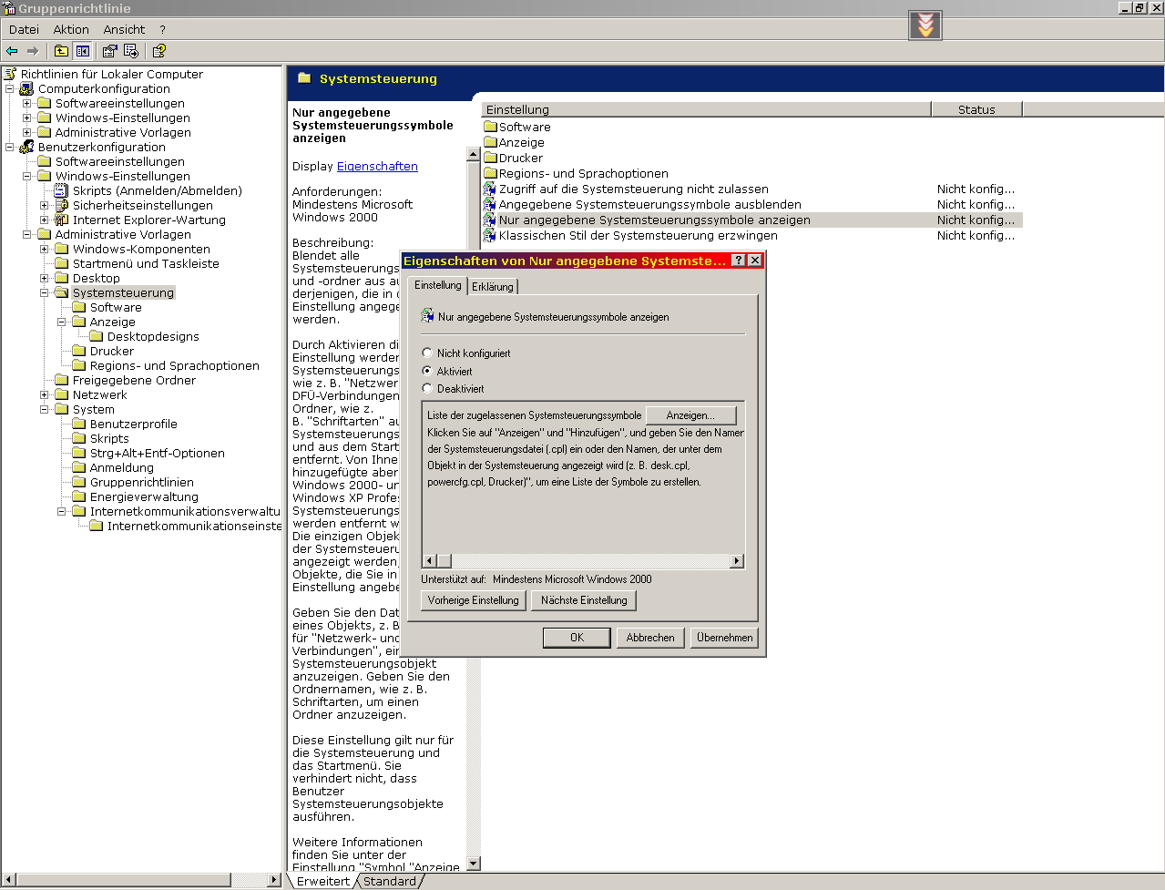 Wenn sich aber der Admin anmeldet (kann auch ein lokaler sein wenns nicht anders geht), dann soll alles einstellbar sein.